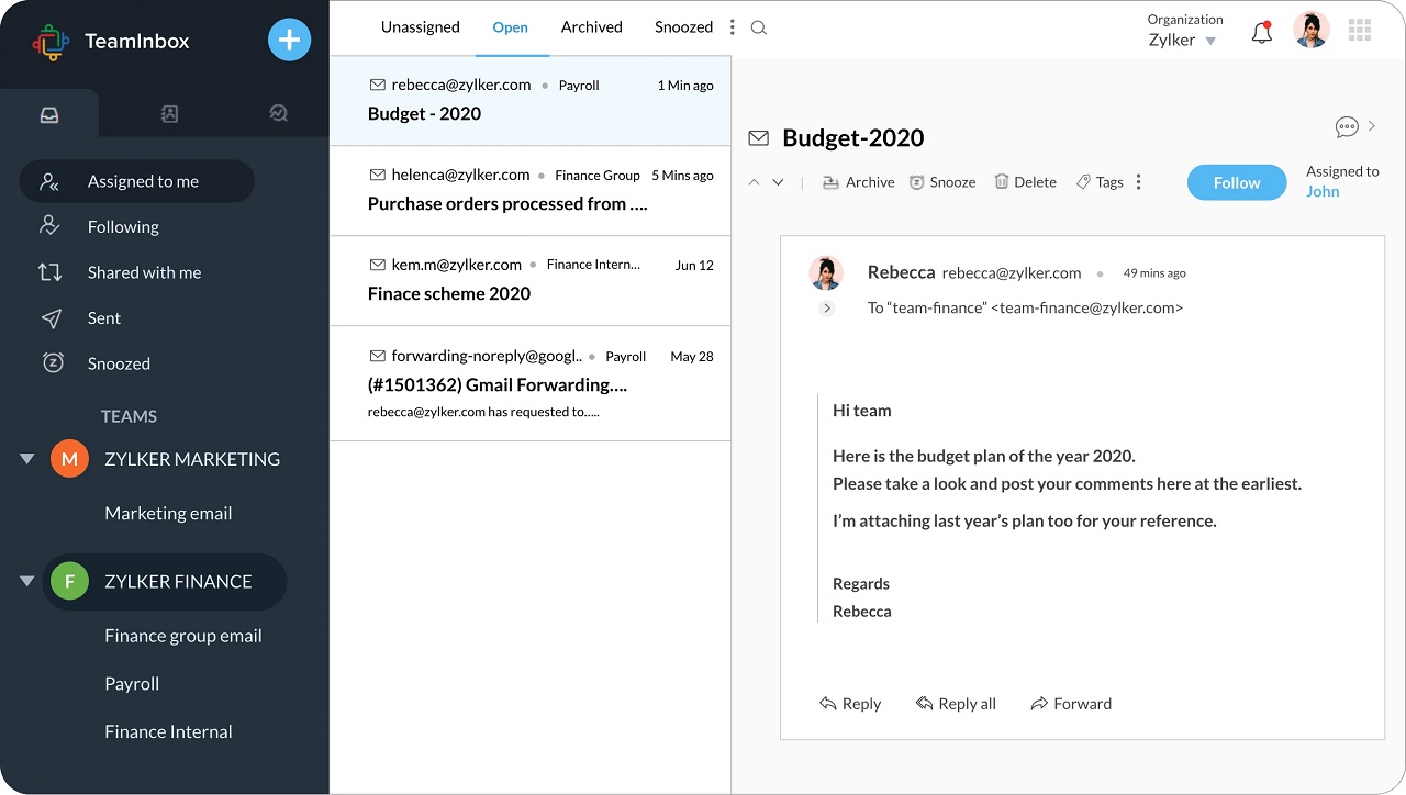 Make teamwork easy with shared inboxes. Create a public inbox for your team and let them work comfortably in a transparent work environment.